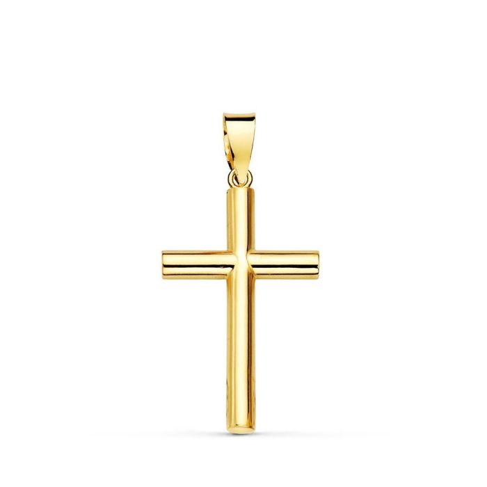 Cruz de oro amarillo lisa tubo hueco 2.5mm. 21x 13 mm