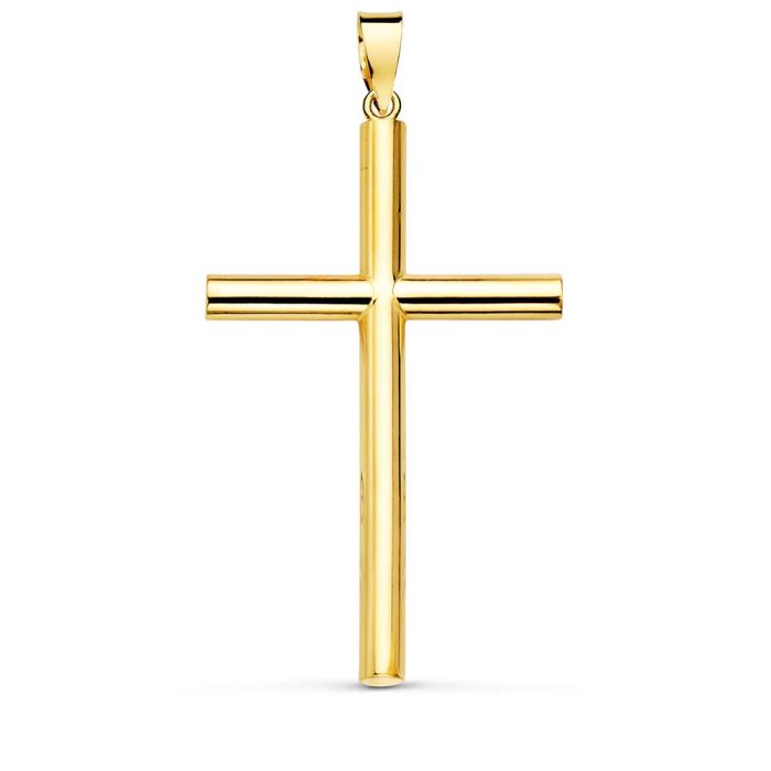 Cruz de oro amarillo lisa tubo hueco 3mm. 35 x 22 mm