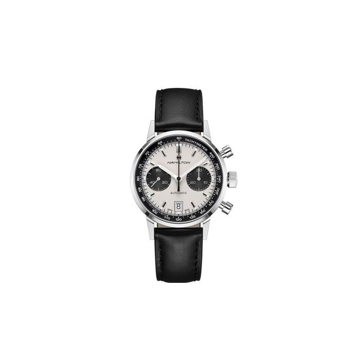 El Hamilton Intra-Matic Auto Chrono es la reinterpretación de una pieza emblemática de 1968 que ofrece un look clásico y deportivo. Su estilo auténtico de los años 60 y su movimiento automático exclusivo H-31 hacen de su esfera 'panda' un distintivo reclamo.