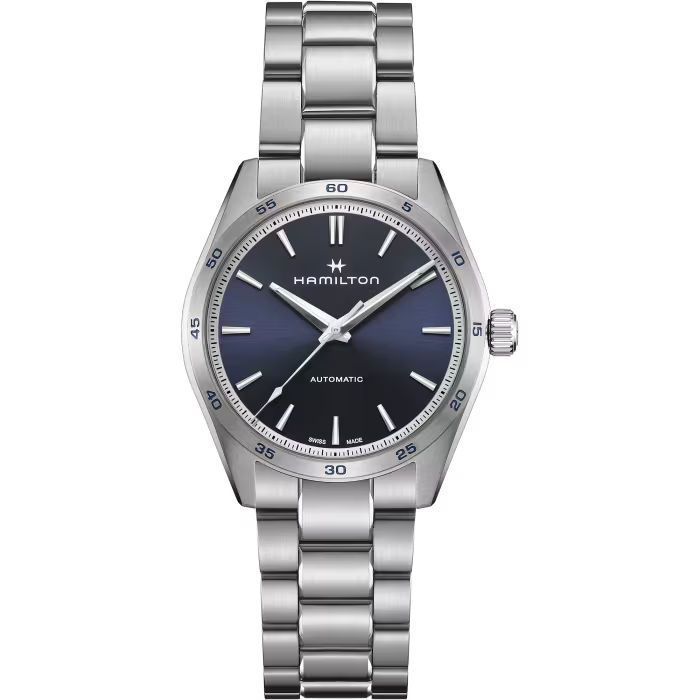 La línea Jazzmaster Performer, diseñada para quienes buscan combinar la funcionalidad y el estilo, ofrece un aspecto imponente, con un diseño deportivo y refinado. Este Jazzmaster Performer Automatic, equipado con el movimiento automático H-10 con reserva de marcha de 80 horas, presenta una caja de acero inoxidable de 38 mm realzada por una discreta esfera azul oscuro y un impresionante brazalete de acero inoxidable.