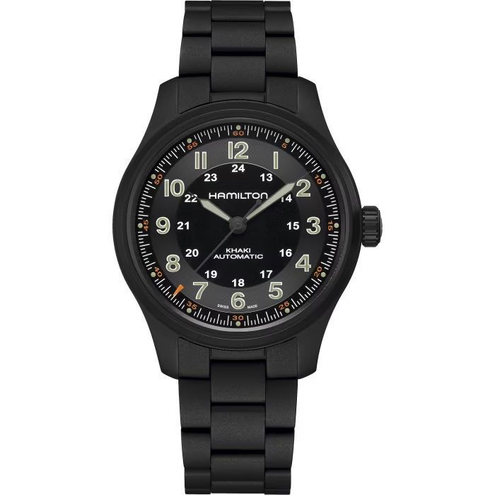 Equipado con una caja y un brazalete de titanio con revestimiento PVD negro, el Khaki Field Titanium 42 mm es un reloj muy versátil que puede llevarse en cualquier ocasión. Su esfera negra con legibilidad optimizada te ayudará a emprender cualquier aventura, mientras que su brazalete presenta un acabado arenado que aporta robustez y carácter a su diseño militar. El Khaki Field Titanium, que combina la funcionalidad ligera y el estilo militar, es un compañero fiable para nuevas experiencias.
