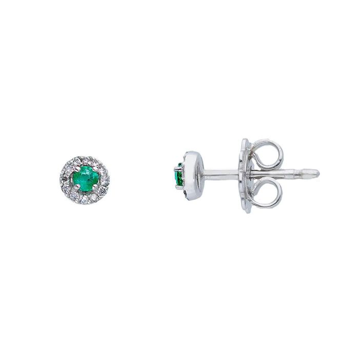 Pendientes oro blanco 2 esmeraldas de 0,11 ctes y diamantes ,0,07 ctes