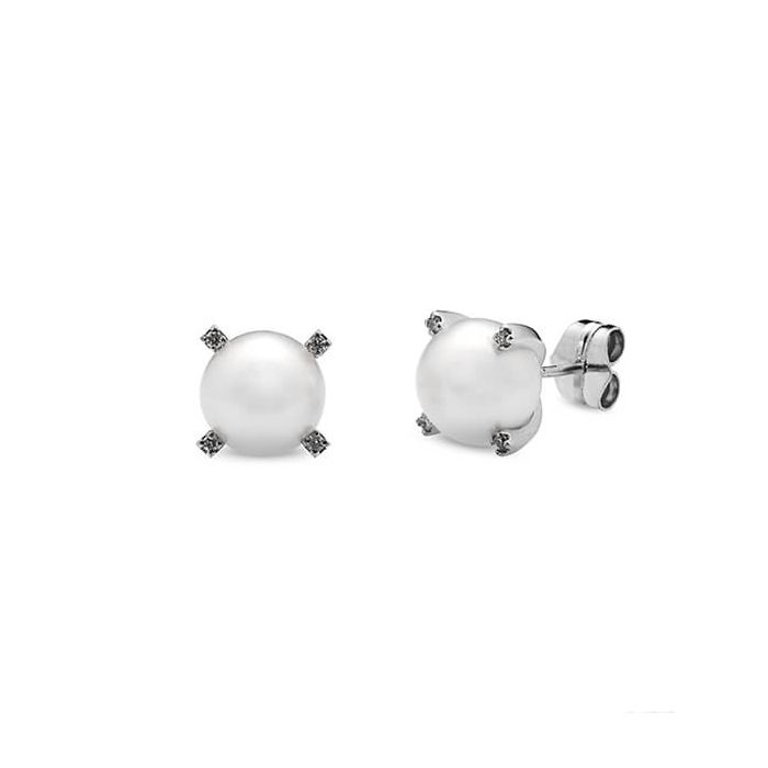 Pendientes oro blanco de 18 quilates , perla cultivada de 9 mm y diamantes