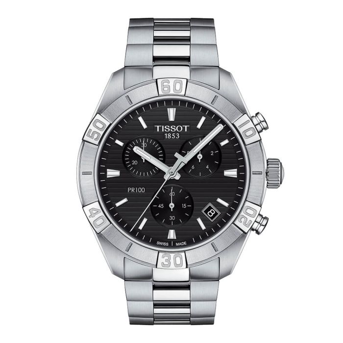El Tissot PR 100 Sport Chronograph Gent es uno de los modelos más populares de nuestra colección. Esta versión masculina combina un diseño atemporal con la elegancia de los detalles de espíritu deportivo, como el bisel o la esfera.