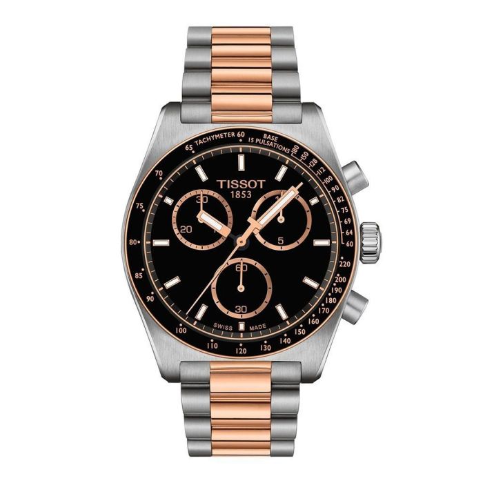 Presentado por primera vez en la década de 1960, el PR516 se inspiró en el mundo de las carreras de coches. A medida que Tissot amplía la línea PR516, continúa alimentando el espíritu de aquellos que buscan un reloj tan implacable como sus objetivos, impulsándoles a afrontar los retos sin rodeos, al igual que los héroes que lo llevan. El PR516 Quartz Chronograph ocupa un lugar destacado, con una atrevida esfera negra y llamativos detalles en PVD oro rosa. Con su brazalete bicolor de acero inoxidable y PVD oro rosa, este reloj le mantiene sincronizado con el ritmo de la vida, asegurándole que mantiene el impulso hacia la victoria. El movimiento cronógrafo de cuarzo ofrece un cronometraje sin esfuerzo y sin necesidad de darle cuerda constantemente, proporcionando la consistencia y precisión necesarias en cada momento.