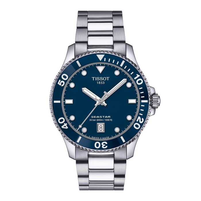 Desde el primer vistazo hasta el uso diario, el modelo Seastar 1000 Quartz de 40 mm transmite estilo, rendimiento y versatilidad. Cada modelo es una armoniosa unión de elegancia y tecnología, que aúna el saber hacer relojero suizo y el diseño eterno. Este tamaño de caja enormemente versátil está diseñado para satisfacer a las personas que buscan un reloj elegante, que pueda pasar del día a la noche sin renunciar a unas prestaciones técnicas excepcionales. Al igual que los modelos existentes de 36 mm y 45,5 mm, estas piezas toman su nombre de su certificación de resistencia al agua de 1.000 pies, equivalente a 30 metros de profundidad. 1.000 pies, equivalente a 30 ATM o 300 metros. Ofrecen biseles giratorios unidireccionales para cronometrar con fiabilidad la actividad subacuática. La legibilidad en condiciones de poca luz se ve reforzada por la aplicación de Super-LumiNova® a las agujas y los marcadores horarios de los relojes. Las correas y brazaletes pueden intercambiarse mediante el sencillo sistema de cambio rápido de correas de Tissot, ofreciendo al propietario la oportunidad de elegir entre una amplia gama de correas Tissot compatibles y personalizar su reloj según su estado de ánimo o la ocasión.
