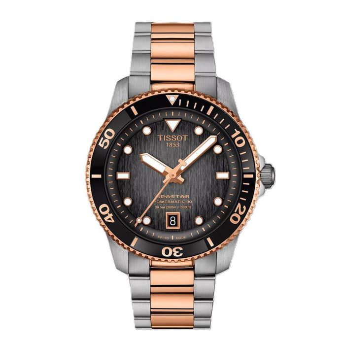 a colección de relojes Tissot Seastar 1000 combina estilo y rendimiento sin comprometer al diseño: la inspiración en el mundo del buceo da forma tanto a la apariencia como a la funcionalidad de este reloj, manteniendo su rendimiento a una presión de 300m. El tema del buceo continúa a través de elementos como un bisel unidireccional, una correa con una hebilla de seguridad para buzos, además de agujas y marcas luminiscentes.