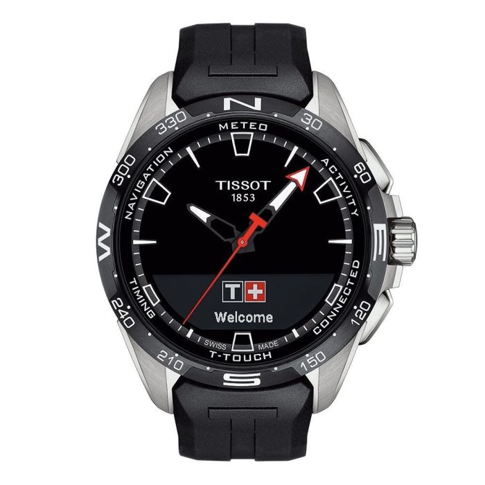 Descendiente del primer reloj táctil multifunción de la historia, el T-Touch Connect Solar encarna la filosofía de Tissot: Innovators by tradition. El T-Touch Connect Solar es, ante todo, un reloj, conectado, respetuoso de la privacidad, interactivo, autónomo, contemporáneo, sostenible y 'Swiss Made'. Está inspirado en el diseño del T-Touch, más moderno, elegante, más nítido, afirma con fuerza su linaje como reloj deportivo, técnico y todo terreno. La caja de titanio de 47 mm es hipoalergénica y está equipada con un bisel de cerámica ultrarresistente. Se encuentra disponible tanto en titanio satinado, titanio PVD negro o titanio PVD oro rosa. El sistema operativo SwALPS, desarrollado por Swatch Group en colaboración con CSEM, es totalmente 'Swiss Made' y es compatible con iOS, Android y pronto Harmony OS. Cuando se encuentra en modo conectado, posee múltiples funciones, como el seguimiento de activida o las, notificaciones de mensajes o llamadas. La información se muestra en una pantalla MIP (memoria en píxeles) altamente legible. Cuando no está conectado, recupera las funciones de un T-Touch Solar Expert: calendario perpetuo, cuenta atrás, cronógrafo, alarmas, meteorología y altímetro. Tiene una autonomía casi infinita en modo desconectado y en modo conectado, pudiendo llegar hasta los 6 meses dependiendo de su uso y su exposición al sol.